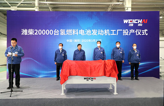 At 2:00 p.m. on March 31, Chairman Tan Xuguang of Weichai Group announced that Weichai's new plant, with a capacity of 20,000 hydrogen fuel cell engines, was officially put into operation! This is a key step by which Weichai's hydrogen fuel cell engine business is heading to the world-class commercial field, laying a solid industrial foundation for Shandong Province to build a "city based on green power of hydrogen".