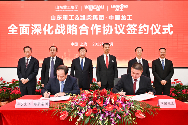 In the afternoon of December 15th, 2022, Shandong Heavy Industry, Weichai Group and China Lonking signed an agreement on comprehensively deepening strategic cooperation in Shanghai. Tan Xuguang, Secretary of the CPC Committee and Chairman of Shandong Heavy Industry Group, Chairman of Weichai Power, and Li Xinyan, Chairman of the Board of Directors, CEO and President of China Lonking Holding Co., Ltd. attended the event and made speeches.