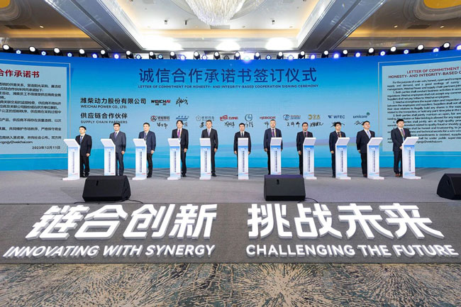 Wang Decheng, Weichai Power CEO and General Manager, signed a letter of commitment for good faith cooperation with representatives of 10 suppliers.