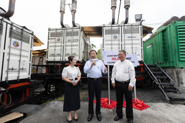 In the morning of April 10, the 30,000 hours operation ceremony of Weichai generator set on Koh Si Chang Island was successfully held. Tan Xuguang and the gen-set supplier company Namsang jointly witnessed this milestone moment.